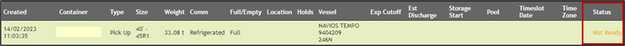 NOTE: If you encounter that there’s no event time to MOVED TO YARD but it has truck gate in time; the booking will still show as NOT READY.