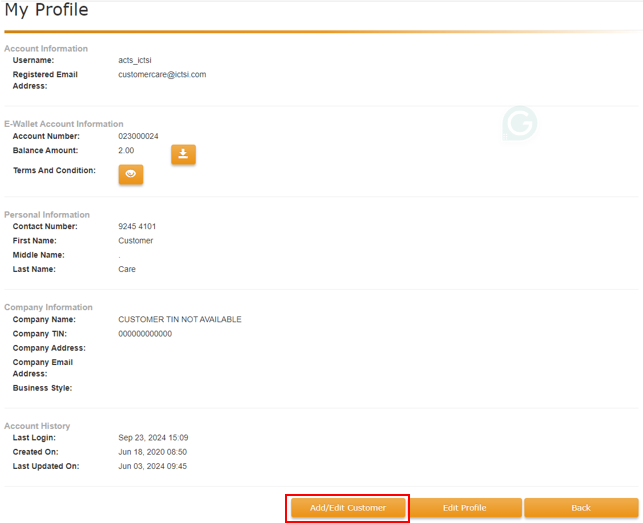 3. Click on ADD/EDIT CUSTOMER on the lower part of the screen.