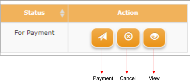 9. Click the PAYMENT button under the Action column. Should you wish to cancel your request, you may also do so by clicking CANCEL button.