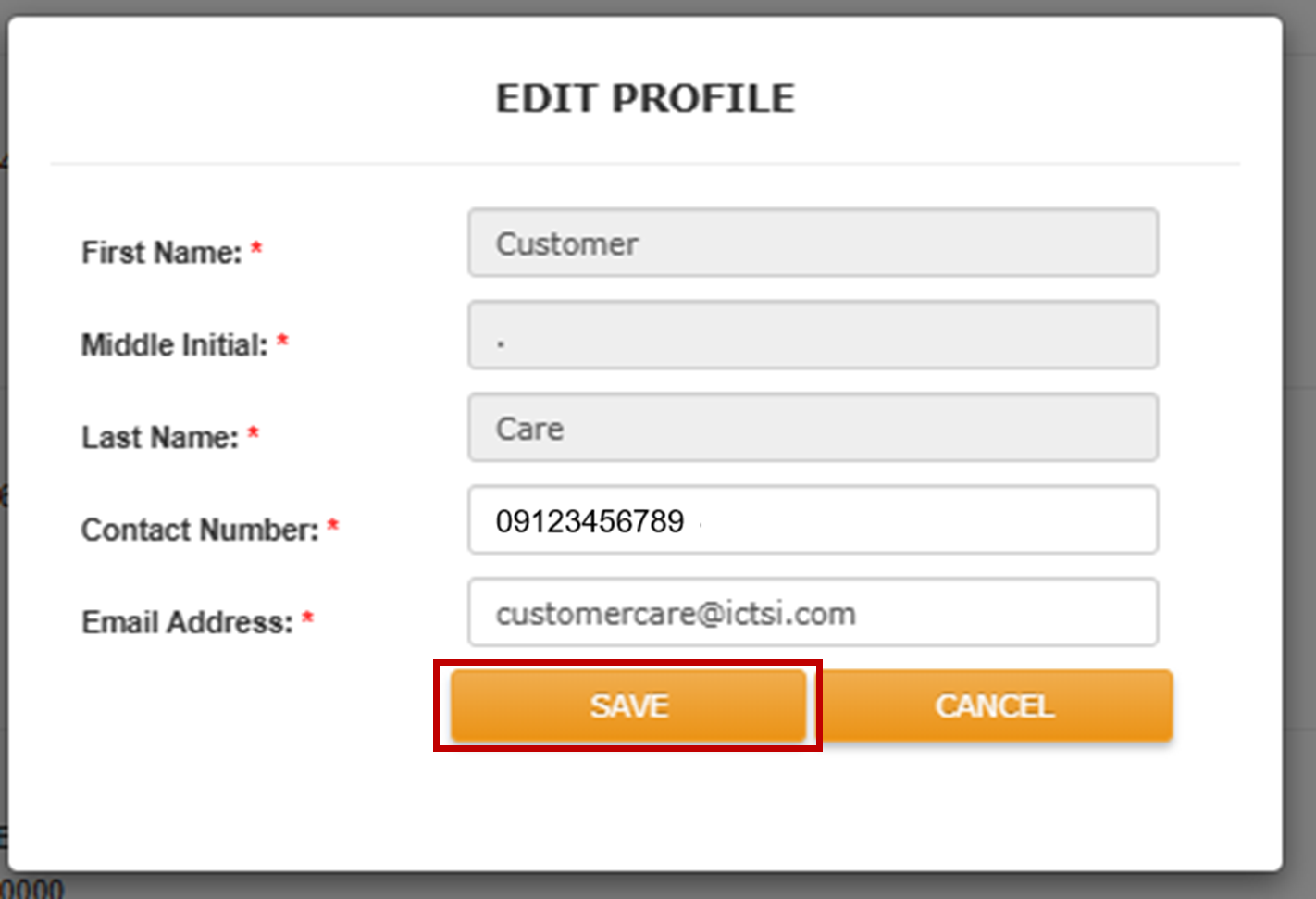 4. Update your contact information as needed, then click on SAVE.